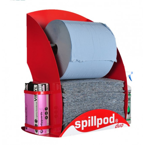 The EVO Spillpod Duo Dispensing Station Full Kit is the ideal workshop solution for maintaining a cleaner working environment. It can be wall-mounted or placed on any work surface, providing convenient access to a range of wiping and absorbent materials. This station encourages a tidier workspace and is perfect for industrial settings.